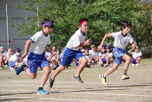 5年男子を皮切りに、町陸上大会が始まりました。「秋晴れのもと その1」は、100m走パレードと参りましょうか! みんな、がんばるいい顔です。 くたくたになるまで、みんな走り切りました!
