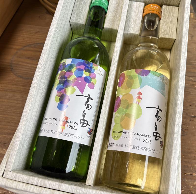 日本一のデラウェアの産地高畠町 高畠産のデラウェアを使用したフレッシュでおいしいワインです! 甘口、やや辛口2種類セットです
