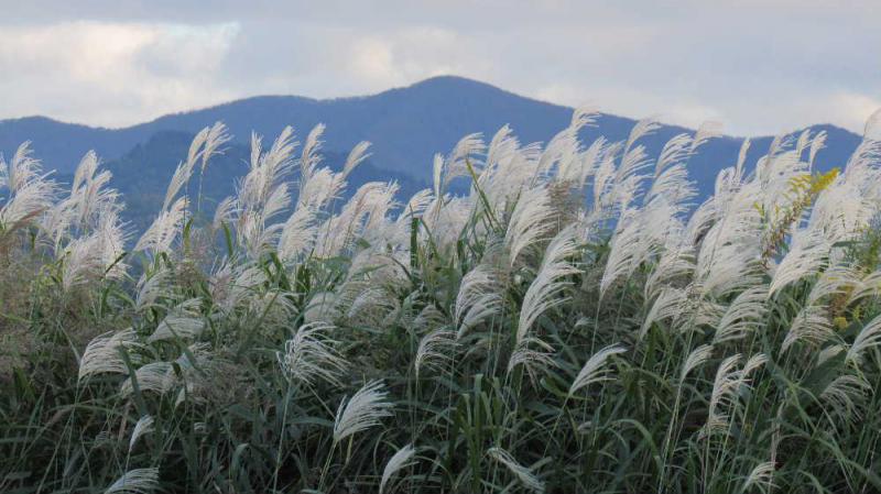 ●真っ白なススキの穂が風にゆれて秋の陽ざしの中気持ちよさそうです