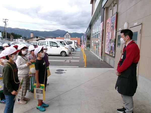 10月24日(木)、3年生の社会科見学(スーパーマーケット)を実施しました。見学先は「おーばん 白鷹店」です。見学やインタビュ―を通して、売り場のひみつや働く人の工夫等について調べていきます。 さて、今回の見学ではどんな発見があったかな?今後は調べてわかったことをもとに、みんなで報告書にまとめていく予定です。そちらの出来も楽しみにしています!ご協力いただきました、おーばん白鷹店様、ありがとうございました。