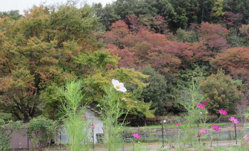 ●コスモスと紅葉 まさに秋本番の風景です 昨日はとても寒い一日で外で作業していても汗もかかずに終わりました いよいよ秋から冬へと季節は移り変わっていくのでしょうか コスモスもどこか寂しくげに咲き紅葉もだいぶ進み葉っぱも赤くなってきました 一歩一歩秋が深まっています
