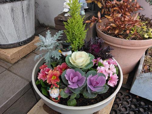 ●《バラ庭》ばーばの庭遊び〜冬の寄せ植え、葉ボタンは!