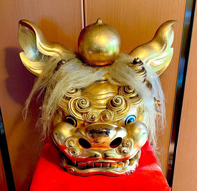 剥離している。獅子頭や耳も寄せ木作りだが重さは7.8kgと複雑な装飾の獅子の為か重い。