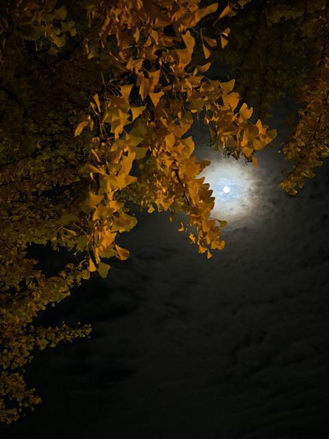宮内熊野大社の大銀杏。と月。今朝には、ほぼほぼ葉が落ちていました。もうすぐ雪が降るでしょう。