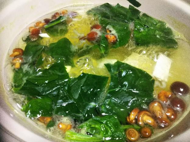 ”天然なめこ”、山友さんが採ってきたのでお家でお鍋に投入、自然の山に自生する天然のなめこ・は、そのぬめり感、コリコリした食感は各別ですね。スーパーなどのなめこはは、オガクズ等を利用し屋内で人工栽培した”菌床なめこ”が中心、他に、ホダ木を使って山の中など屋外で育てる”原木なめこ”があります。原木ではは、自然の山の中で栽培される為、天然に近い感がありますけども、やはり、独特のコリコリした歯触りは”天然なめこ”のものですね。なかなか採りにいっても先に採られてたりと、大変そう、採り残しがあったようでわずかだけでしたが、貴重な天然きのこいただきました。