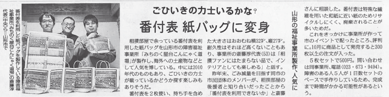ごひいきの力士いるかな?番付表、紙バッグに変身山形の福祉事業所製作、人気に毎日新聞