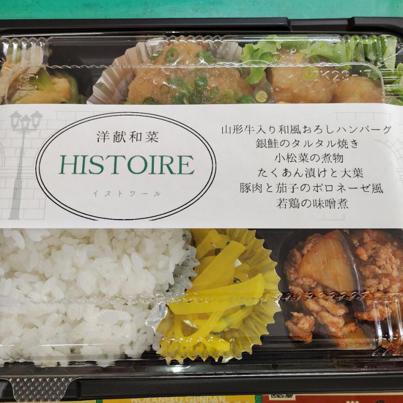 今回のお弁当は、少しでもクリスマス気分を味わっていただこうと、赤湯のイストワール(20-5834)さんに依頼しました。人気のハンバーグを中心に、銀鮭のタルタルソース、ナスのボロネーゼ…と、洋風で多彩なラインナップの中にも、煮物やお漬物も加えてくださり、味付けやご飯の量などご配慮いただき感謝感謝です(*^-^*)お味はもちろんどれも絶品でした☆