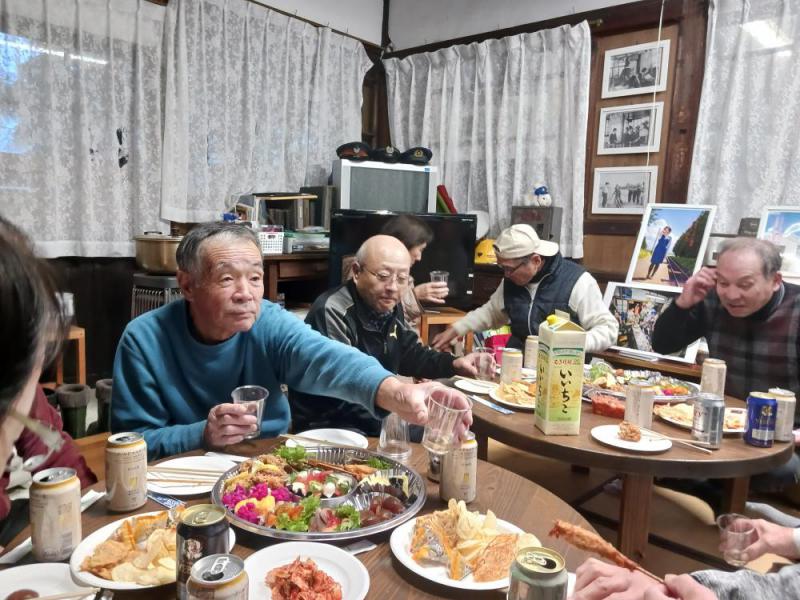 雪囲いと電飾設置作業、点灯式に続いて、おらだの会の忘年会を開催。今年は、会員の奥さんが鍋を準備してくれたおかげで、心までホッカリ暖まりました。 駅茶での忘年会は妙にホッとするものがありました。思えばお花見や芋煮会はありますが、駅茶で会員がゆっくりと酒を酌み交わすのは忘年会ぐらいなものです。このひと時、この雰囲気が大事なのだと感じます。 振り返ると今年も多くの方と出会うことができました。病を克服して北海道からのツーリングの途中で立ち寄ってくれた人。10年経って再訪してくれたご夫婦。大学生最後の年に個展を開いてくれた写真部OBの彼。米屋先生撮影ツアーの皆さんとの待合室での交流会など、とても楽しい時間を過ごすことができました。 この一年、皆さんには大変お世話になりました。そして来年も宜しくお願いします。