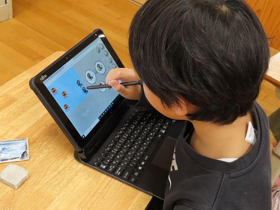 12月18日、2年生がプログラミング学習を行いました。プログラミング教育とは、情報技術革新が目まぐるしく展開されている昨今、これからの時代を生き抜く子供たちが、それらの変化に対して主体的にかかわり、幸せな人生を歩んでいけるように進められている教育の一つです。あらゆる活動でコンピュータ等を活用することが求められているこれからの社会では、コンピュータを理解し、上手に活用していく力を身につけていくことが大事です。今回は、viscuit(ビスケット)というアプリを使い、自分で考えた動かしたいもの(例えば、ある子は金魚)に指示を与えることで、その対象物が、上に上がったり、横に泳いだりと、指示通りに動くというプログラミング学習を体験しました。コンピュータは「プログラムで動く」ことを実感した授業でした。