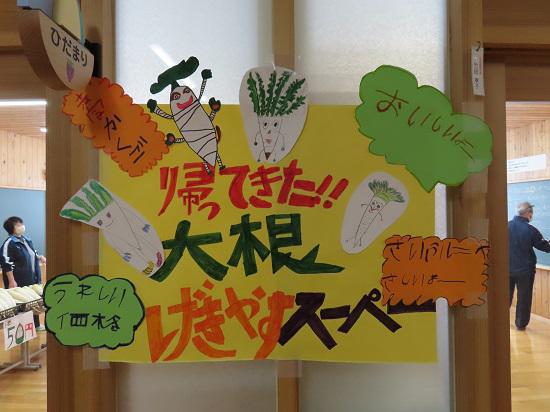 12月23日、今年も待ちに待った「激安スーパーひだまり」が勢いよく開店しました。巻坂先生にお力添えいただきながら、9月末に大根の種まきをしました。それから3か月。雪が降りしきる中、自分たちが育てた大根を力を合わせて収穫しました。手を真っ赤にしながら、抜いた大根を冷たい水で土を流し、お店にきれいに並べ、いざ開店!廊下には待ちきれないお客さんが店の中をのぞいていました。(私です…)中間休みということもあり、店内には職員だけでなく、一っ子の姿も見られました。(一っ子は残念ながら購入できませんでしたが…)店名の通り、まさに激安!。看板には、「赤字覚悟」の文字も見られました。子供たちは、大根をおいしそうに並べること、お客さんと丁寧にやり取りすること、本数に合わせて間違えずに計算し、お釣りも渡すこと、そして挨拶や笑顔を忘れないことなど、たくさんのことを学びました。ここで身につけた力は、次のステップで必ず必要とされ、生かされていくものです。この取組で成功したことを自信にして、今後も何事にも積極的にチャレンジしていくことを願っています。