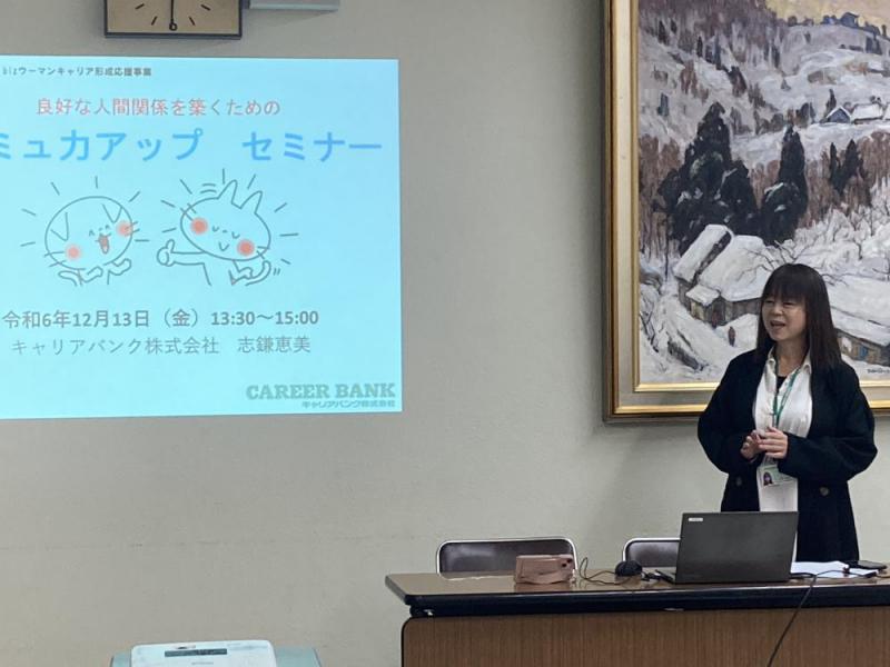 12/13(金) コミュ力アップセミナーを開催しました。円滑なコミュニケーションの取り方についての内容でした。前に立って話をする実践もあり、初めは緊張している姿も見られましたが後半には皆さん堂々とされていました。終始笑い声のあるセミナーとなり、参加された方からは「楽しかった!」という声も聞こえてきました。ご参加くださった皆さん、どうもありがとうございました! ◆◆ ご参加いただいた皆さんの声 ◆◆・コミュニケーションは仕事・プライベート、生活していく中でなくてはならないものだと改めて感じました。・何気ない言葉一つで相手に良い・悪い様々な印象を与えてしまうので丁寧な言葉づかいを今日から実践していきます。