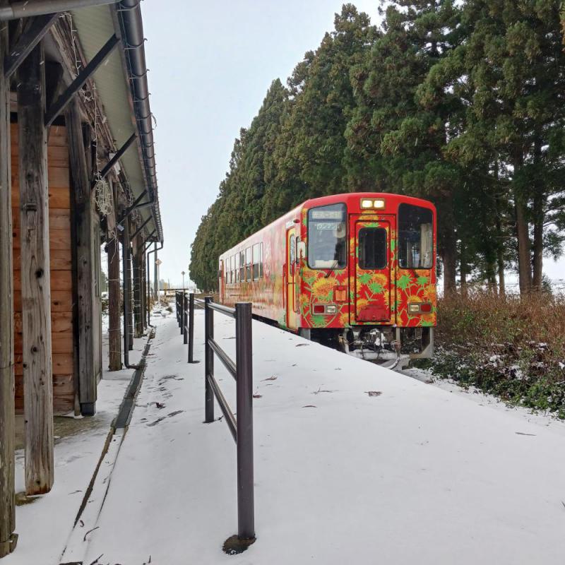 吹雪がちょっとだけ止んだ時、紅花号がやって来た。真っ赤なボディがピカピカで、とてもカッコ良く見えた。(12月23日撮影)