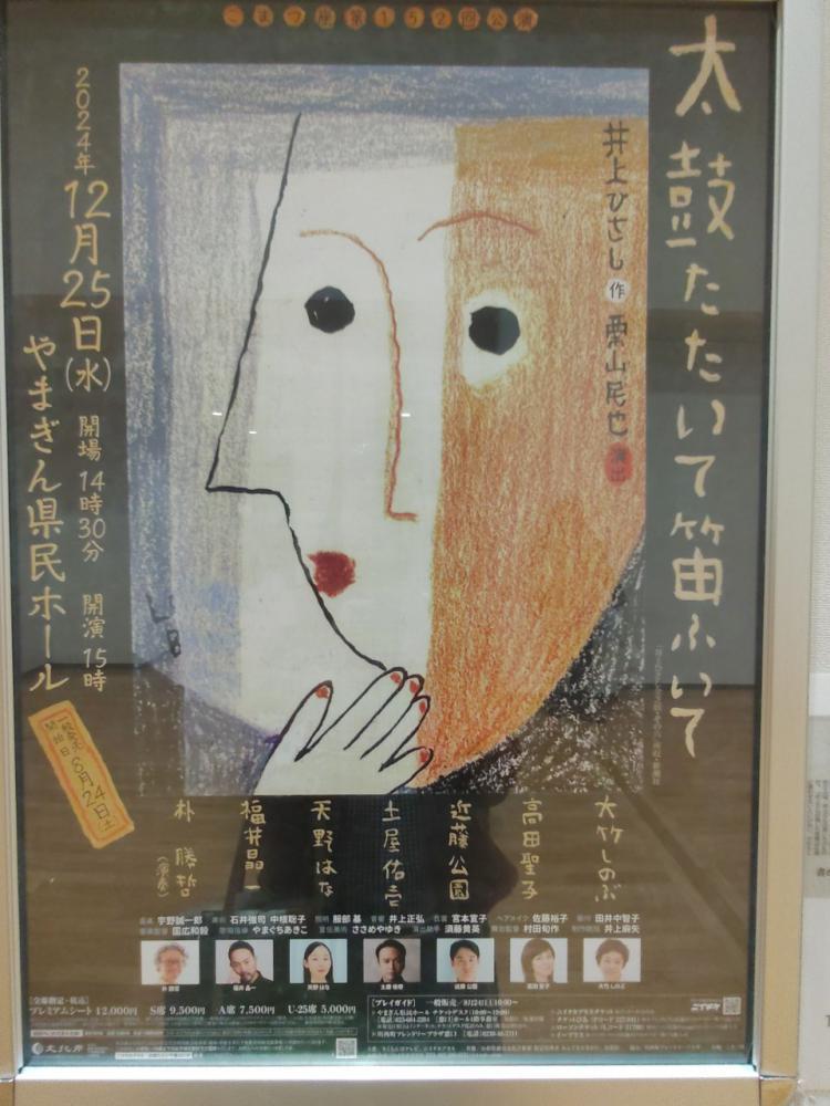 大竹しのぶさんの舞台は宮城で見たのを含め今回で2回目です…作家林芙美子さんをもとに作られた作品でした…2002年初演から林芙美子さんを演じてる大竹しのぶさん。林芙美子さんの若かりし頃からある程度の年齢に達した時代までを演じ分けていました。舞台はあまり変わることがなく華やかさが無い場面で6人しか出てこない公演でしたが話の設定は、戦争時代が、関わる話の内容に考えさせられる内容もありました。大竹しのぶさんの長台詞にはやはり圧巻の迫力があります。セリフは確か一度 台本を読んだらほぼ頭に入り込むという凄い女優さん!大竹しのぶさん演じる林芙美子さんの高田聖子さん演じる母親役の林キクさん…この方の一瞬の演技に私の心は感動し涙が勝手に溢れてきていました。親よりも先にお骨になってしまった娘を心から大事に思い愛おしく思う演技が素晴らしかったです…こまつ座第152公演は、井上ひさしさん原作の【太鼓たたいて笛ふいて】でした…11月1日東京公演を皮切りに大阪、福岡、愛知、そして山形…井上ひさしさんは山形の方なので千秋楽は、山形! なんと素敵な機会に巡り会えたのだと思いました…演じる方々にとって千秋楽とは並々ならぬ思いがあるようです。観るお客さん側から演技する方々への感動や想いを伝える事ができるのはたくさんの拍手とスタンディングオベーションです!そしてカーテンコール…ましてや千秋楽ともなれば演者達が特別な想いで舞台の上から必ず挨拶してくれるこの上ないスペシャルDAYとなります。滅多にお目にかかれない舞台の貴重な千秋楽公演! 行って良かったです…山形公演の舞台でいつも思うのですがなぜ開演に遅れてくるのか?不思議です…、もう、舞台の幕は上がり観客も舞台の世界に、既に踏み込んでいます。幕が上がる前に、キチンと席に着いているのが観客のマナーだと思います…そして電話が来ようがLINEが来ようが けしてスマホを開かない事!途中電話のバイブが、ずーと鳴り続けバッグにしまっているのが普通なのに 手元に持ちスマホを何度も開ける行為にえっ、ウソでしょう!と思いました。かと思えば ビニールから何かを取り出しているのか?カシャカシャカシャ音がするし…どんな時にもマナーってあるのですからね…マナーって常識や約束事だと 思います…次々、素敵な公演が山形でも観ることができますよぉーに…山形市南館2の1の8心と身体のリラクゼーション眠れる森023‐646−8633