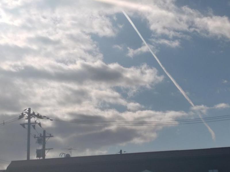 空高く伸びに伸びていく飛行機雲?でも、飛行機系はこんな一直線に空高くは上がらない…数分で消えてしまったんだけれど  いったい何だったんだろう?と不思議な気分になるある日の朝の空でした。山形市南館2の1の8心と身体のリラクゼーション眠れる森023‐646−8633
