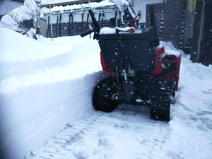 強い冬型の気圧配置による、北海道から中国地方の日本海側を中心に大雪が降り続いてます。昨日昼過ぎ市内に出かける用事があり家前の除雪、一昨日除雪したのですが、一晩でまた50pほどの積雪でした、帰宅は夜9時半、家の前の市道は2回目の除雪がされていていいのですが・・我が家に入るにところに除雪した雪玉があり、除雪しないと入れません、車庫前も屋根から落ちた雪で山になってる、・・帰宅してからの除雪はトホホな感じ、今朝、恐る恐る外見ると、雪のピークを過ぎた感じ、でも市道の除雪された雪をのけないと車は出れない、玄関前は屋根からの雪で昨日片づけたにもかかわらず、またお山ができて早朝から除雪です・・まだ一月中ですがね・・2月いっぱいはこんなのが続くのかなー・・