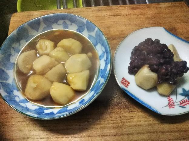 昨年収穫した我が家庭菜園の里芋、段ボールに入れたまま、もう1月も中・・カビも生えず、腐りもせずにちゃんと残ってました・・調べてみると・・里芋は、寒さと乾燥に弱い野菜。とある、保存方法はというと、キッチンペーパーで包み、常温で保存するのが基本とある。具体的には温度7〜10℃、湿度85〜90%なら、2〜4カ月保存可能。ということです5℃以下に長く置くと、低温障害を起こして果肉が変色するので注意してください。とありましたが、台所の片隅、段ボールに入れたままでしたがよく持ちました。買ってきた小豆であんこ作りもしました。小豆は我が家の小豆も残ってはいるのですが、さやから出して、虫食いやらゴミ取り除きと、なにかと手間がかかる・・手っ取り早いのでスーパーで買ってきました・・ほんと買ったほうが楽ですよね・・里芋煮て煮っころがしと、煮たやつにあんこかけて食べてみました・・・・トロっとしてうまかったです。残りも来週中には使わないとですが、山友呼んで芋煮でもしよう