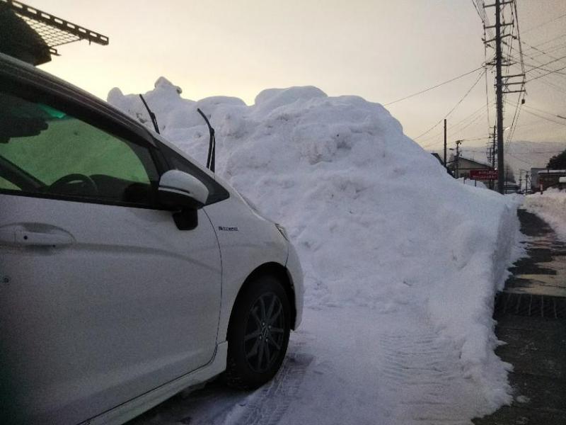 昨日、一昨日と久しぶりに雪降りのない日がやってきた、このところの雪で米沢市内の駐車場は、どこも雪の山と化している・・毎日除雪で積み上げた雪が山になる、そして視界も悪く駐車場のスペースも狭くなっていく・・道路に出るときは車が来てるのか、車高より雪の山が高いので、道路の状況が見えないので怖い思いをすることがしばしば・・車高の高いハイエースとかだと近づいてる車が見えるからいいのですがね・・ドライブカメラが車の先端もしくは屋根よりずっと高いとこに付けてないとだめだよね・・雪国用にないのかな?