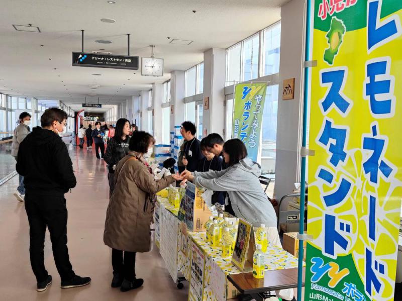 1月19日(日)、山形県青年の家がコーディネートするボランティアサークル「nicoこえ」は、山形県総合運動公園で行われた『アランマーレのゲーム(ヴィクトリーナ姫路戦)』の会場にて、通算29回目となるレモネードスタンドを開催しました。(第1回目、2022年10月9日ゆぴあマルシェから数えて) ボランティアサークル「nicoこえ」は2023年に『山形レモネードスタンドプロジェクト』を始動させ、多くの方々のご協力を得て小児がん支援活動を行ってきました。2023年分の結果報告は以下のURLをご覧ください↓http://seinen.jp/log/?l=536215 2024年は、これまでの山形レモネードスタンドプロジェクトを更に発展させた『山形 Make Lemonade プロジェクト(YMLP)』を立ち上げ、小児がん支援活動を行ってきました。県内では小児がん支援の輪がどんどん広がっており、多くの学校・ボランティアサークル・団体・企業、そして個人の皆様からレモネードスタンドを開催していただきました。「nicoこえ」としても14回のレモネードスタンドを行うことができました。(2024年1月20日アランマーレ戦から数えて)『山形 Make Lemonade プロジェクト(YMLP)』の詳細は以下をご覧ください↓http://seinen.jp/log/?l=534802 そして、2025年「nicoこえ」としての第1回目のレモネードスタンドをアランマーレ戦の会場で開催しました。 アランマーレさんからは試合前の貴重な時間をお借りし、会場の皆さんへ向けてレモネードスタンドの説明や小児がん支援へのご協力を呼びかけるアナウンスをさせていただきました。 ご購入いただいたレモネードについては原価を差し引いた分を山形大学医学部を通して山形県の小児がん患者の支援にあてていきます。多くの方々からのご購入、ご声援に心より感謝申し上げます。 〜追記〜前回(第28回目)のレモネードスタンドは以下をご覧ください。http://seinen.jp/log/?l=545820 次回(第30回目)のレモネードスタンドは以下をご覧ください。http://seinen.jp/log/?l=547083