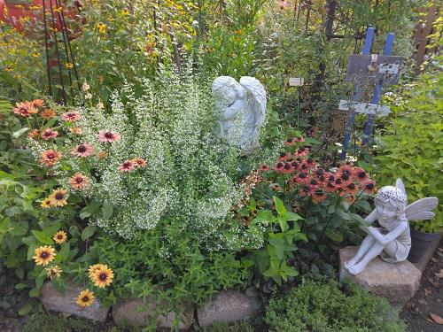 我が庭の自慢できるメインガーデンは? 毎年、新しいエリアも増え庭も変化してきましたが2024年は、じーじのロックガーデン!素敵な風景が出来上がりました。 =======================2024年は。。。 2024.08.02ブログより涼しげな癒しの”カラミンサ” (トップ写真)は・・・すっかり”カラミンサ”に占領された?お気に入りのエリア秋まで長く咲いてくれるので増やしてみたら増えすぎた?今日のNHKのあさイチの『みんなグリーンだよ』は猛暑を乗り切る!暑さに強い草花その中に”カラミンサ”の花材があって色々と紹介されていました。 ーーーーーーーーーーーーーーーーーーーーーーー2024.07.07ブログより 庭を入ってすぐのところ、つい先日まではホワイトガーデンとして楽しませてくれた場所、今は次の花たちへのバトンタッチ?の段階です。その中で、ルドベキア アーバンサファリだけが頑張ってくれています。 ーーーーーーーーーーーーーーーーー 我が庭の一番のメインエリア。。。 2018.06.06撮影 2023.06.09撮影 2024.05.26撮影 ーーーーーーーーーーーーーーーーーー 2024.10.13ブログより我庭の秋のメインガーデンに・・・ じーじが、以前通信教育で勉強した成果のロックガーデン! ↓グラス”ミューレンベルギア・カピラリス”はいつも、いいね!いいね!の言葉が出てきます〜♪秋空に映える、紫色の穂は何とも言えない風情… ↓今年、最初に植栽した”ユーフォルビア”成長が早く真夏でも元気です! その後に、何種類かを植栽〜すっかり”ユーフォルビアの丘”になってしまいましたが、いい感じのガーデンに出来上がり満足しています。(作ったのはじーじですが…) 2024.10.31ブログより 何回も登場しているエリア(ロックガーデン)ですが。ガーデンマグも満開で、最高の秋の風景が撮れました〜(^^♪男の子とあひるさんのコラボもかわいくいい役目をしています〜! ↓紫色の穂のグラスにクレマチス、、、より一層、素敵な風景を見せてくれています。 ===============ー======== おまけに。。。 ばーばの庭遊びのミニガーデン〜♪ ===================