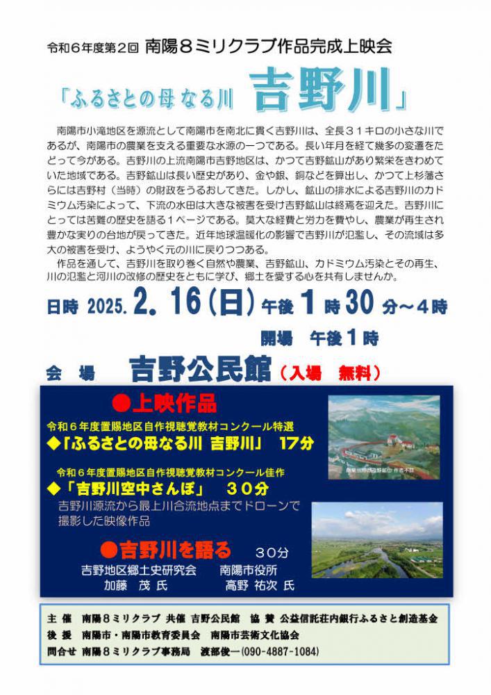 ●明日からはこの冬最強の寒波が襲来する予報がでています どのくらい降るのかは予測がつきません この花暦で花のお便りを届けることができるのは何時になるでしょうか 花ではなく映像作品上映会のご案内です 会場は吉野公民館ですのでご来場いただくにはちょっと遠いのですがご興味のあるか方はぜひご来場ください よい作品に仕上がりました