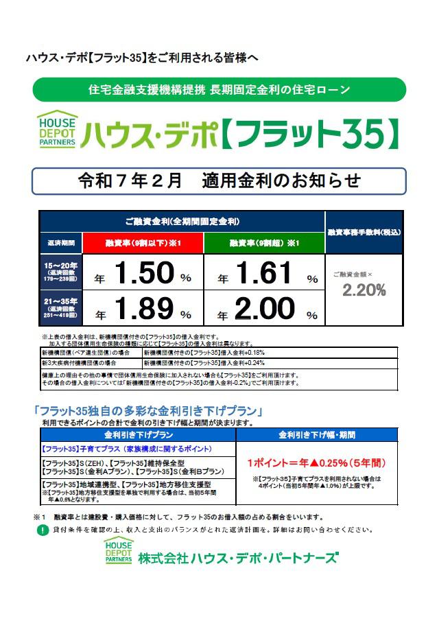 ハウス・デポ【フラット35】の2025年2月の金利情報です。