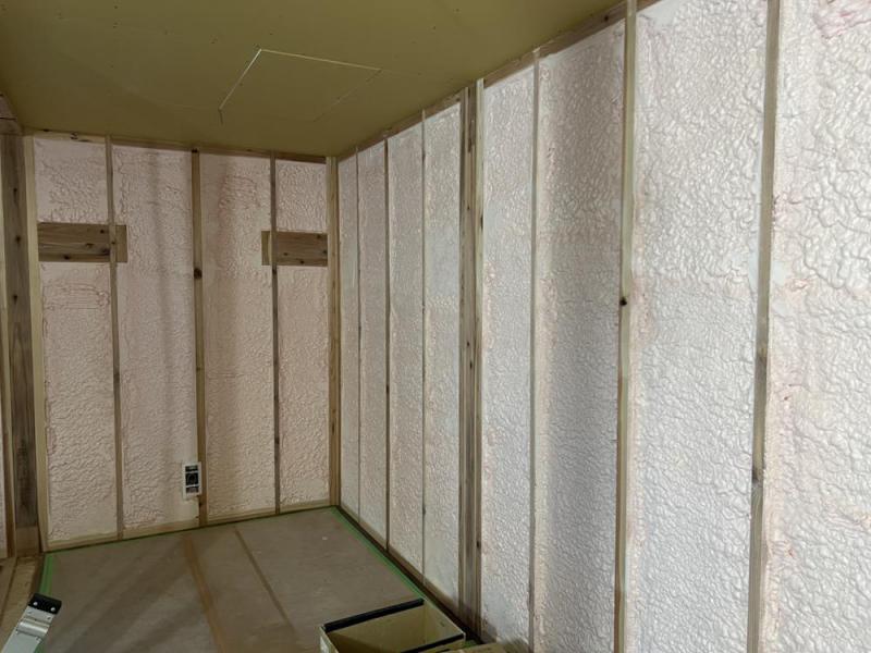 みなさん。こんにちは。現在工事中の現場で断熱材の施工をおこないました。断熱材にも、様々な種類がありますが、弊社では、発砲ウレタンの吹付けを標準として取り扱っています。引きつづき安全第一で工事進めて参ります。