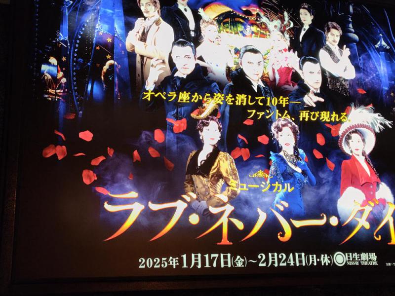 昨年宮城で、市村正親さん&大竹しのぶさんのミュージカルを観て、魂が震えるぐらいの感動を味わいました。本物の THE MUSICAL とはこれだ!!と言う事を思い知らされました。地方に住む私にとってはなかなか芸術に触れることができず自ら足を運ばなくてはそのCHANCEに、恵まれる事が無く感動の体験は、残念ながらできないような気がします。オペラ座の怪人の10年後の話を舞台化したのが【ラブ・ネバー・ダイ】歴史ある日生劇場で行われ、ちょっと迷いながら行きましたが素晴らしい劇場です…全館、ローズカラーの絨毯が入り口から客席まで、敷き詰められていて格調高かったです…全編オーケストラによる演奏‥醍醐味が違います…声が響き渡り物語の世界観にすぐに引き込まれていきます。主役は3組様々なパターンがありましたが絶対に市村正親と平原綾香!!このパターンが観たい!!と決めていました。二人の声量は並外れていました。市村正親さんは、舞台に生きて舞台の上で終わる…言葉が変ですがそれぐらいの人だと思いました。アノ、年齢であのパワー偉大なミュージカルスター 市村正親さんの二人のおこちゃま…父は偉大でありますよぉ…舞台装置が、まず素晴らしい今までにない舞台のあり方で夢のような世界観でした…行って良かった!!ミュージカルって最高!!何事に於いても躊躇していたら時間だけが過ぎていくから…山形市南館2の1の8心と身体のリラクゼーション眠れる森023‐646−8633