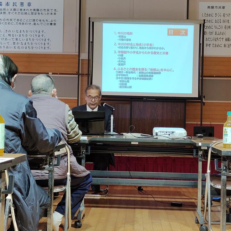 本日、2月8日(土)9:30より、中川公民館にていわぶの里ふれあい講座「ふるさと中川の歴史景観」が開催されました。降雪が続く中、講座開催の前後は嘘のように晴れて徒歩でご来場の方にも安全にご参加いただくことができました。地区内外からたくさんのご参加をいただきましてありがとうございました!