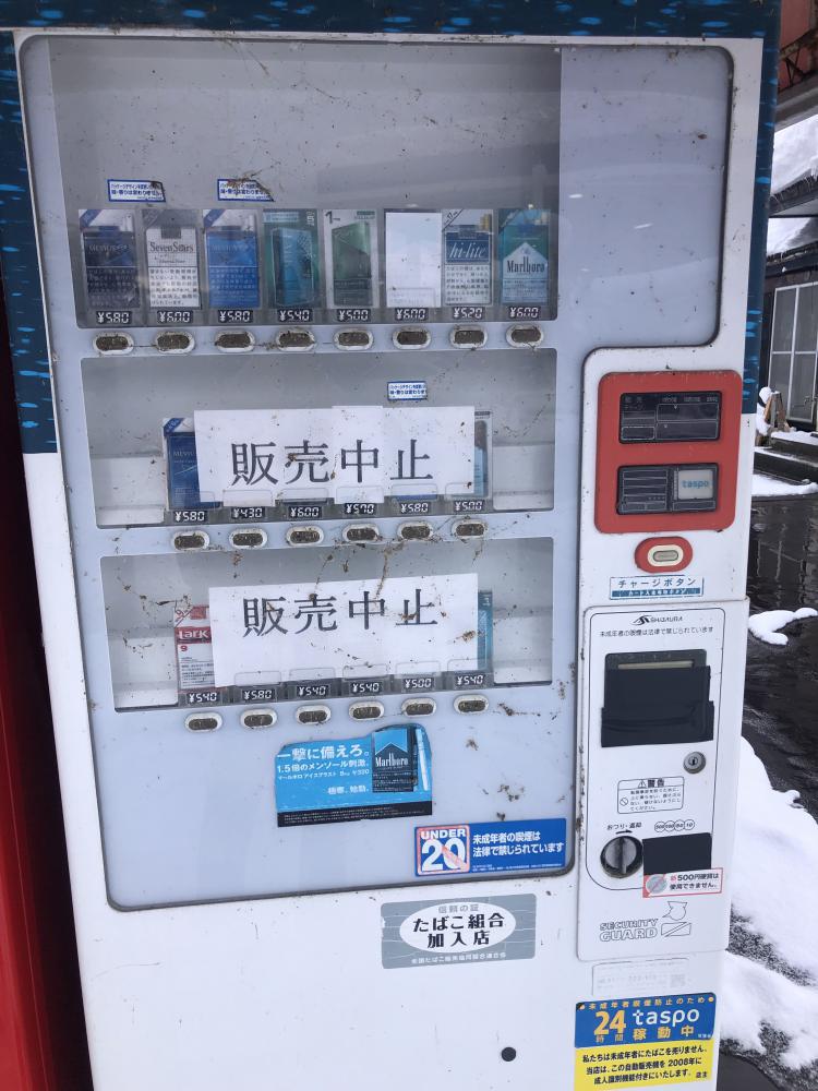 ●高校前のタバコ自販機、やっぱり辞めるは時流かな