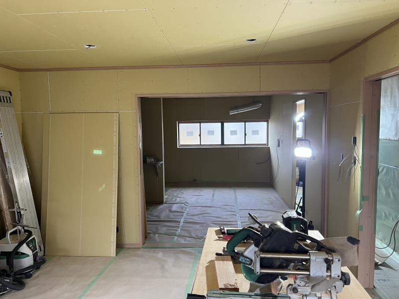 内部ボードも貼り上がり、次は内装クロス工事です!