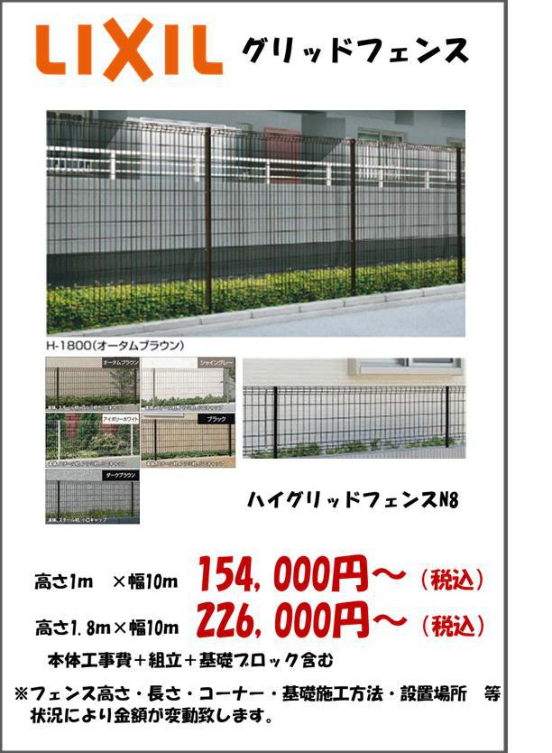 メーカーカタログはこちらをクリック↓↓↓LIXIL グリッドフェンス品番、サイズ等お選びいただき、現場調査のうえ、お見積りいたします。