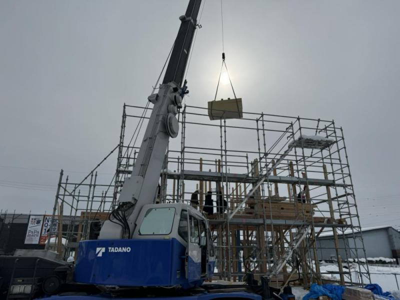 みなさんこんにちは。先日、建て方を行いました。一日で屋根までできるので、大工さんの方は凄いと改めて感じました。引き続き安全第一で工事を進めて参ります。