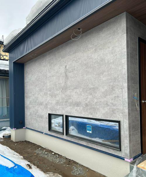3月末に完成内覧会をさせていただく住宅です。外壁工事が終わり、足場が外されました。ネイビーのガルバリウムの外壁をメインに、グレーと木目の外壁を組み合わせています。内部は内装工事が進められており、TV面のアクセントに採用したエコカラットも良い雰囲気です。水回りの回遊動線と、シアタールームが特徴の住宅ですが、内装もグレーとウォルナット色を基調にしており、間接照明も映える落ち着いた雰囲気に仕上がっています。3月は2件完成内覧会を予定しており、ホームページのお知らせに詳細がアップされておりますので、ぜひご覧ください!