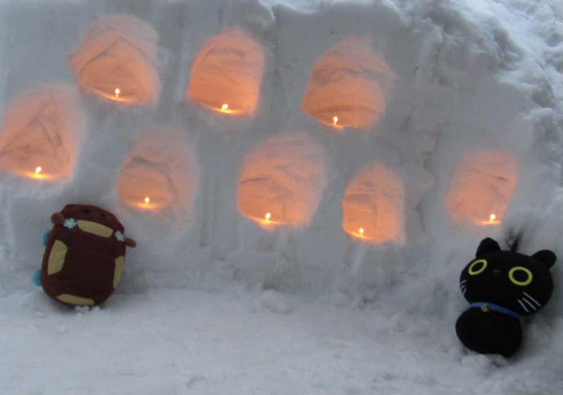 ●一昨日の晴れ 昨日の雨と雪がどんどんと解け出しています 雪の壁をくりぬいて小さなローソクを灯しました ささやかな我が家の雪まつりでぼんぼりがほんのりとまわりを明るくしてくれています 厳しい寒さも峠を越し今日の気温が7度まで上がる予報で暖かくなりそうです