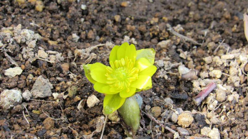 ●我が家の春一番は福寿草 晴天で暖かな気温に誘われてか我が家の庭の福寿草がついに開花しました 芽をだしたクロッカスとチューリップ、福寿草でどれが一番最初に咲くだろうと楽しみに待っていたのですがついに福寿草が最初に開花してくれました 3センチほどの小さな花で淡い黄緑色の花ですが可憐な花で春を感じさせてもらいました 次はなんの花が咲くのでしょうか