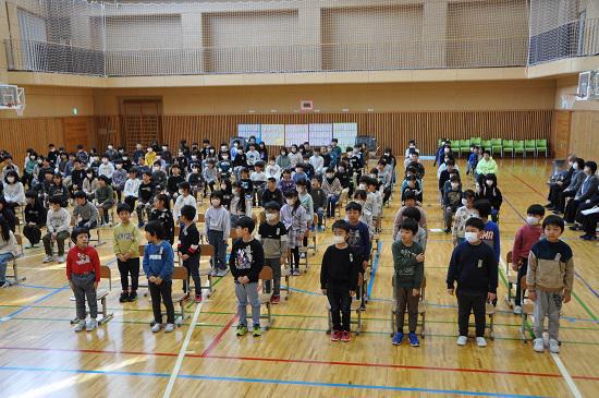 本日無事に修了式を終えることができました。これもひとえに、保護者並びに地域の皆様のおかげと、心より感謝申し上げます。【修了式】修了証授与。代表の6年生に授与しました。令和6年度は212日間でした。よく頑張りました。1年間皆出席賞授与。代表1年児童。6年間皆出席賞授与。今年度は1名でした。本人の頑張りとともに、丈夫な心と体をいただいた保護者、おうちの皆様に感謝申し上げます。児童代表あいさつ。1年間取り組んできたことと、来年度最高学年として励んでいくことを、堂々と述べました。学校後援会顕彰授与。今年度は、全国表彰、県表彰を受けた2名に、後援会副会長より授与していただきました。おめでとうございました。【今日の一コマ】担任から一人一人に励ましの言葉とともに通知表を手渡し、1年間の努力を認め、ほめたたえる様子が随所に見られました。6年生は、最後の練習に余念がありませんでした。(私が校内を回った時間の様子です。)【5年生による卒業式準備】放課後は5年生による、式場準備が行われました。手際よく、自分の役割を次々とこなす5年生の姿に、来年度の最上級生としての決意が感じられました。頼もしい!!【啓翁桜が祝福しています・・・】センターホールと児童昇降口前にきれいな啓翁桜が飾られています。三澤優治さん、恵美さんのおうちからいただいたものです。ありがとうございます。卒業生の門出をお祝いするかのように、きれいに咲き誇っています。卒業生の皆さん、明日感謝の気持ちをもってご覧ください!