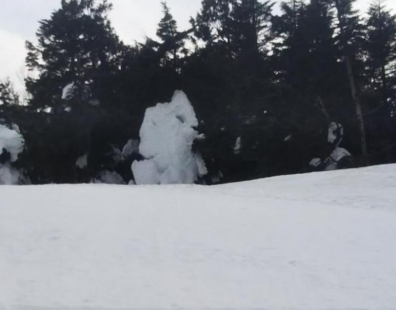天元台高原第二リフト乗り場から第二支柱のリフト右林の中に一昨日ですが顔発見・・・思い出せないがマンガのキャラですね・・何だったかなー思い出せなく気持ち悪いですね、ついこないだはモヤイ像ができていたり、オラフ像だったりする、雪や気温で半日すると変わったりしますが・・栂もり樹林帯の木の雪はほとんど消えてきた・・3連休2日間滑ろうかと思っていたが、昨日は強風で行けなかった天元台、今日はよさそうですから、こぶ滑りに行くぞー