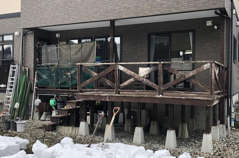 みなさんこんにちは。今回はデッキ工事を紹介します。新築時に建てたウッドデッキが経年劣化し、特に屋根がないところの劣化が酷く、今回は部分改修をさせて頂くことになりました。まずは劣化している所を解体して、新設するデッキとつなげるところまでを大工工事でおこないます。また次回、進捗をご紹介したいと思います。