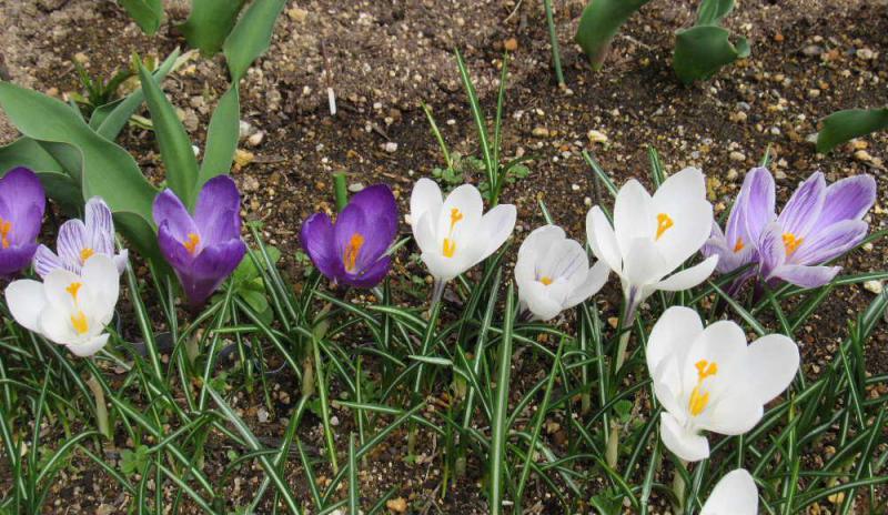 ●クロッカスの花が咲きそろい陽の光をあびて輝いています もう枯れかかっている花もあります早春を彩っていた花はゆうに盛りを過ぎ次の花にバトンタッチしようとしています 春が駆け足で通り過ぎようとしています