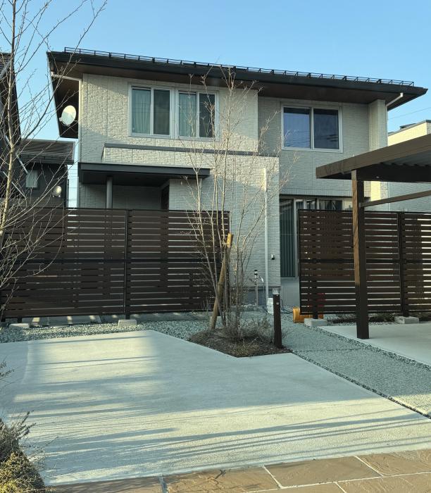 春めいた気温で桜も満開になっていますね。朝に箇条公園までランニングをして花見をしながら体調を整えた朝でした。 本日は、建物の外観と外構について記載します。建物の外観は非常に引き付ける要因として大きく、誰もが外から見てオシャレだなとか思う魅力のあるモノであると感じます。 そして、その要因の一部に外構も大きな影響を与えます。今週と来週はその点を挙げたいと思います。 上記の画像は建物の屋根ラインを外壁の凹凸に袖壁をつけて揃えることでスッキリとした印象になっております。また、玄関ポーチが特にオシャレな感じで屋根に庇を付けて二重屋根をすることでコストはかかると思いますが、デザイン性を高めていますね。更に、格子で目隠しをして建物を引き立てています。 こちらは外構の擁壁をコンクリート打ちっぱなしで目隠しをしているようです。仕上げもシンプルで建物とのバランスとして合っていますね。こちらも建物の外壁は白で植栽の緑が建物を引き立てています。オシャレな家は外構にもお金をかけているなと実感している所です。今後、打ち合わせをするお客様には資金計画で外構へ予算を多めに設定していこうと考えている所です。