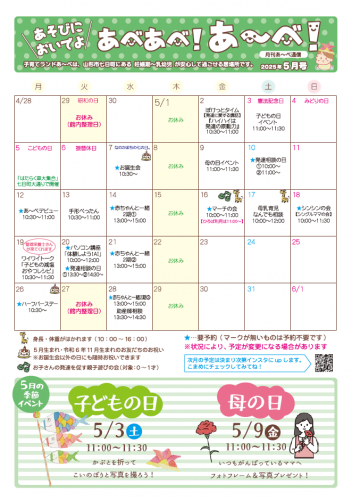 2025年4月16日発行あべあべ!あ〜べ!2025年5月号【PDF版】情報が一目で確認できちゃう『あ〜べカレンダー』は要チェック☆☆「あ〜べの近くのあのお店」今月はどんなお店かな?☆「おしえて!〇〇〇〇のこと」今回のテーマは生活リズム!☆裏面にあ〜べのイベント・講座・相談のご紹介を載せています♪ぜひご覧ください!【お問い合わせ】子育てランドあ〜べ023-615-1930