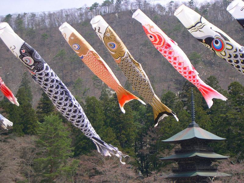 歴史公園の三重塔前に、今年も"こいのぼり"が泳ぎ始めましたヨ〜♪こいのぼりと三重塔のコラボレーションが見られるのは、期間限定、今だけです!!爽やかに泳ぐ風景を、ぜひ見に来て下さいね〜♪