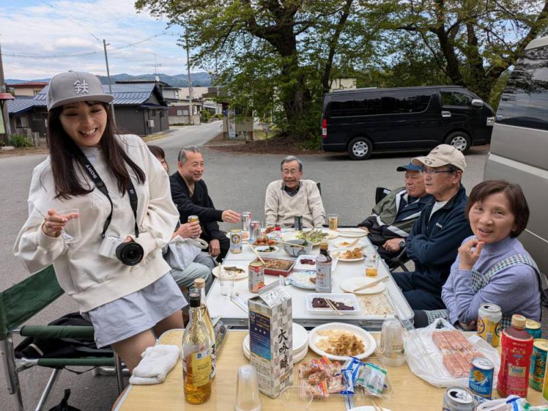 5月3日(土)、鉄道アイドルの伊藤桃さんが、青森に帰る途中で成田駅に立ち寄ってくれました。成田駅の桜も桃さんが来るまで、頑張って咲いていてくれました。桃さんのリクエストは、「飲めなくても良いから、乾杯だけはして欲しい。」ということ(笑)で、2025年の締めのお花見会をしました。 桃さんは、駅を訪れた方をお花見に熱心に誘います。そして参加してくれた方に、おらだの会が駅を「人が集まる場所」として守っていること、いつ来ても暖かく迎えてくれる事などを一生懸命説明してくれています。その姿はとてもありがたく、頭が下がる思いでした。 「大好きな山形鉄道 羽前成田駅に行って来ました。『ただいま』と帰る場所は、大人になってから作ってもいいのです。」。桃さんがインスタグラムに投稿したメッセージです。皆さん、また来年会いましょう。そして、お帰りなさい。 伊藤桃さんのユーチューブ(昨年のお花見会)はこちらからどうぞ → 【築102年】桜、気動車、そして木造駅舎と人の温かさ…週末パスで日帰り山形旅【山形鉄道 羽前成田駅】 (youtube.com)