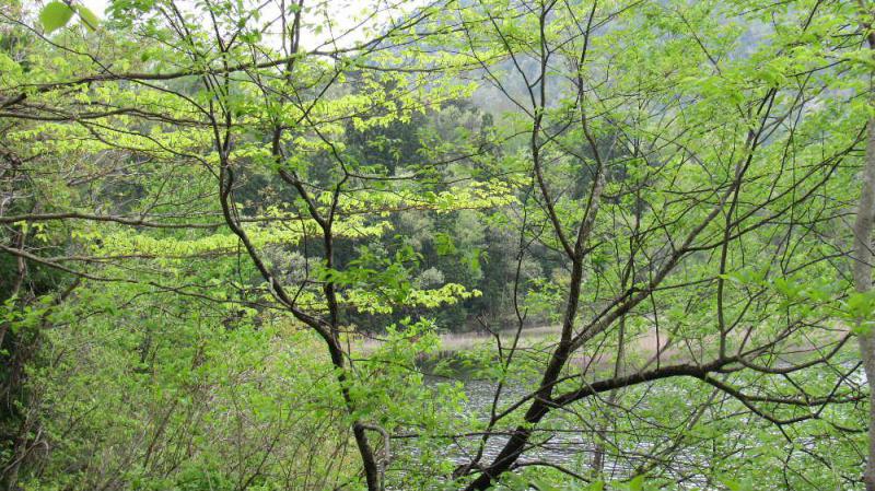 ●新緑が眩しい 地域の中にある小さな堤に行ってきました 思ったりよりも木々の緑が芽吹き 周りの山も色とりどりの芽がきれいに芽吹いて初夏の雰囲気を漂わせていました 湖面は小さな波が立ち残念ながら湖面に映る新緑を観ることができませんでした これから周りは緑が深まり爽やかな初夏の季節を迎えます