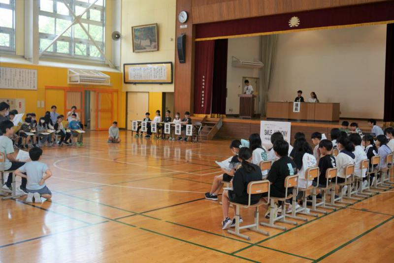 ●児童会総会 今年のスローガンは「SMIL HARMONY」!