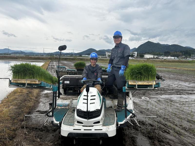 あじさい営農組合です!今週は30度近くなる日もあり、夏のような暑さから一転本日は、肌寒い一日ですね。今日の夕方からは雨模様…皆様、いかがお過ごしでしょうか?あじさい営農組合では、まさに田植え真っ只中です♪本日は4月に入組しました、新しい農メンズの田植え作業現場へ☆細かい操作方法などしっかり教えてもらいながら、ベテラン農メンズから新人農メンズへ指導を行っていました(^^)/これから作業にも慣れ、戦力となるあじさい若手農メンズに期待ですね♪あじさいでは水稲の作業を進めなら、小麦、枝豆、大豆、悪戸いもを同時進行で進めております!農メンズは朝早くから、トラクターに乗り込み農作業!安全第一で!皆さん今日も頑張りましょう☆職員の #笑顔の写真 毎度おなじみ若手代表農メンズと新人農メンズ初登場♪素敵な笑顔をありがと〜う♪職員みんなで頑張りますよ〜!