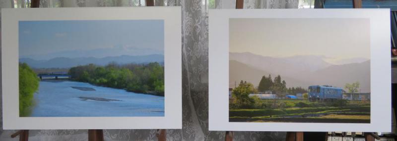 駅茶で行われている「長井線今昔(記録写真&米屋こうじ展)」を観て来ました。その中で、米屋さんの上の作品が妙に印象深いものでした。私にとっては「妙に」と言わざるを得ないような奥深いものを感じるのでした。 撮影地はこれまでも多くの作者が選択した場所であるし、構図も大雑把に言えば特に目立った差異はないように思います。けれども作品の前に立つと、全体に淡いトーンの世界に引き込まれるような錯覚にとらわれました。細部をみると、空の色のグラデーションが、その奥に聳える山並みを包み込んでいます。それぞれの光を放って映る木々の若葉は、油絵のように盛り上って見えるのです。霞のような淡いふる里の風景の中で、フラワー号と共に生命の歯車が確かに時を刻んでいる。そんな作品のように思えました。 在廊されていた米屋さんに、着任して2か月経っての感想と作品に対するお考えを聞くことができました。米屋さんは「実際に住んでこの地域を観ると、季節が確実に進んでいることを実感する。」と語ってくれました。また、「自分の予断やこれまでの作品創りの視点を排除して、目に映るものをそのまま受け入れることを心掛けている。」とも教えてくれました。 米屋さんの言葉からは、着任地あるいは撮影地に敬意(リスペクト)をもって向き合おうとする姿勢を感じました。「芸は人なり」と言います。米屋さんの次の作品を観る機会を楽しみにしたいものです。この作品展は、6月1日(日)までの会期です。ぜひご覧になってみてください。
