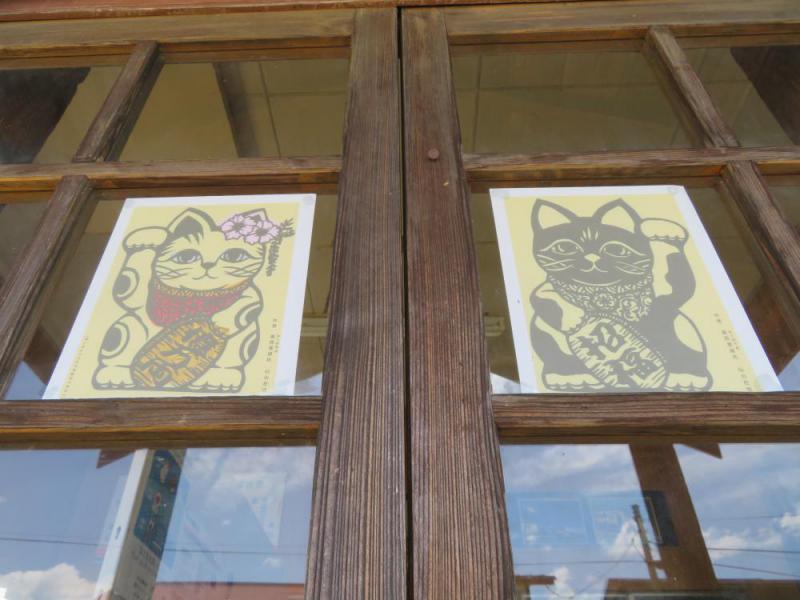 西大塚駅の入口に、2点の「招き猫」が飾られている。4月に成田駅で展示されていた切り絵作家・桑原重雄さんの作品である。招き猫は、右手は金運、左手は客招き、人との縁が深まるとされています。 桑原さんは川西町の出身であり、この作品には山形鉄道とふるさとへの応援メッセージが込められています。6月6日から駅茶にて「木造駅舎『絆』展」がスタートしますが、桑原さんの作品をとおして羽前成田駅と西大塚駅の絆が深まることを期待したいものです。 → 「山鉄頑張れ!応援切り絵展」 閉展間近:おらだの会