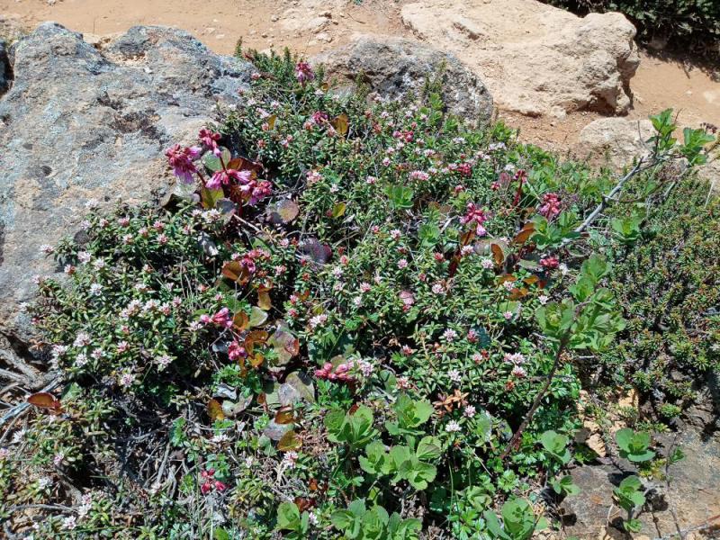 6月7日安達太良山に登山、その頂上付近の岩場において、岩の上を這うように伸びています。草のようにも見えますが、毎年枝を広げ成長する小さな木になります。ツツジの仲間、確かに花も葉もツツジを小さくした姿をしています、小さすぎて良く見ないとわかんない・・ツツジ科の常緑小低木。高山植物。名の蘇芳(スオウ)は、イチイのこと。葉がイチイに似ていること、高い峰に生えることから、由来となっている。