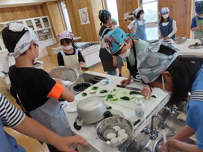 先日の6年生の調理実習に引き続き、5年生の調理実習がありました。ジャガイモ、ほうれん草を使った調理、ゆで卵づくりでした。ゆで卵の皮むきに苦戦していた子どもたちもいました。調理実習は体験活動の中でもとても楽しい学習です。